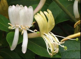 スイカズラは忍冬という生薬名で呼ばれています。冬でも枯れずに耐え忍んで生きているということで、この名が付きました。かの有名な徳川家康が健康維持にため酒に浸けて飲んでいたという逸話があります。中国では花を金銀花と呼びインフルエンザや各種の化膿症に盛んに用いています。有効成分としては、ルテオリンやクロロゲン酸が知られています。
